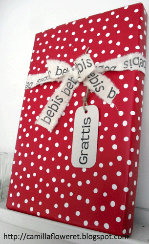 Gjorde ett paket för att kolla hur de ser ut som presentsnören och det funkade ju bra… en kompis kom förbi, hon behövde ett paket till bebis och gillade verkligen iden – kul.